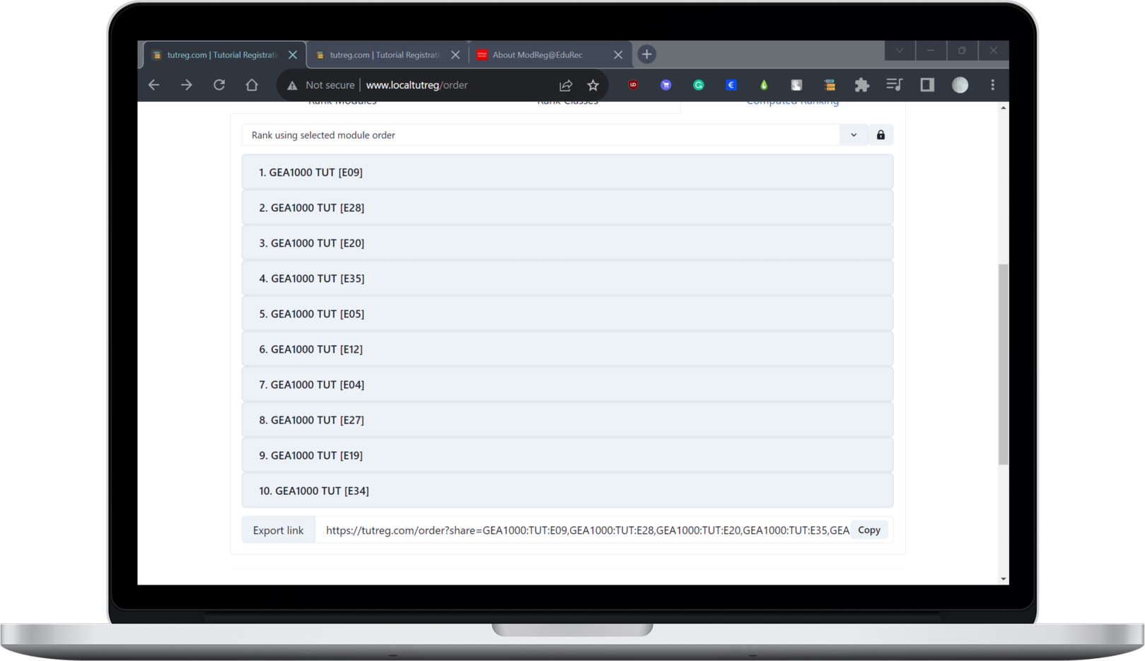 Select and rank your courses in the Rank Classes page. Then, copy the URL given by the website in 'Export link'.