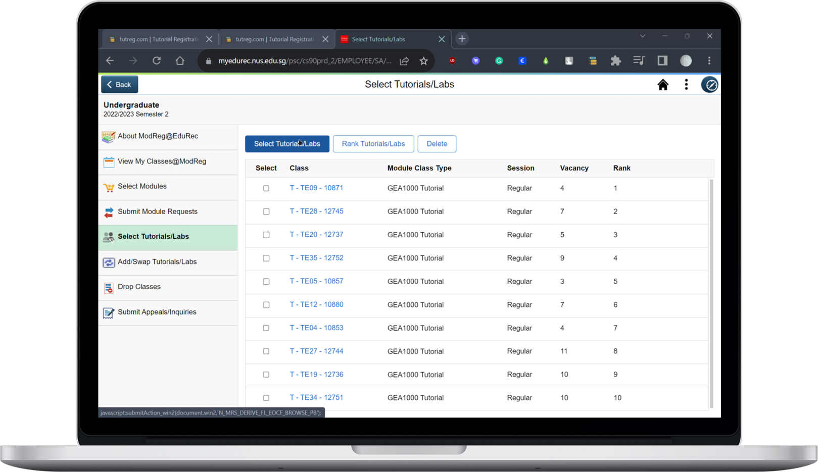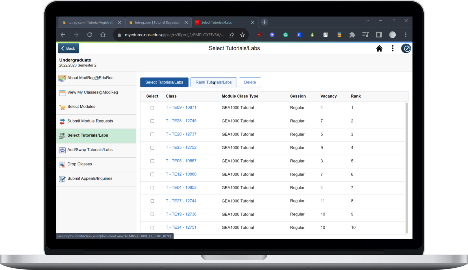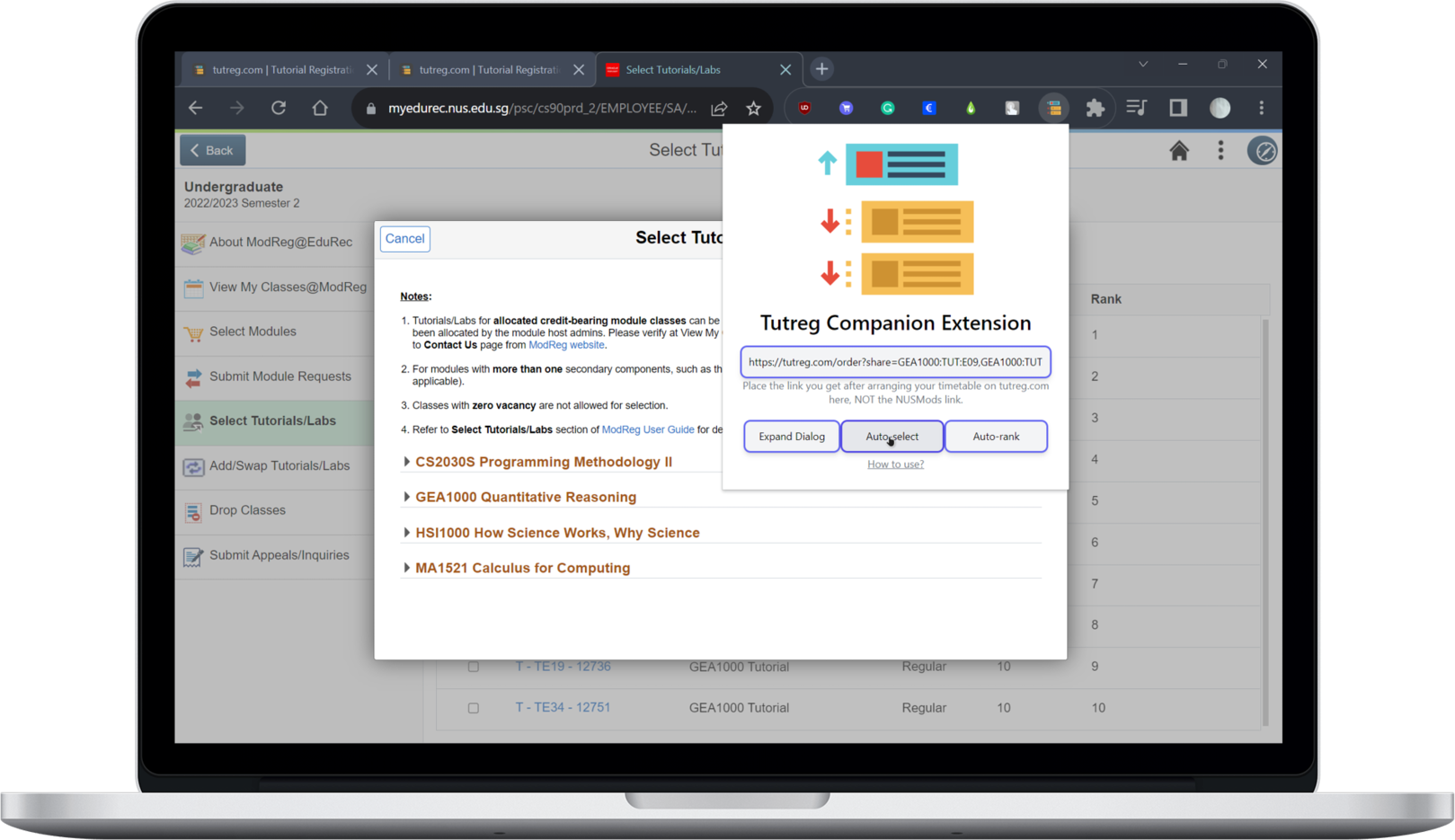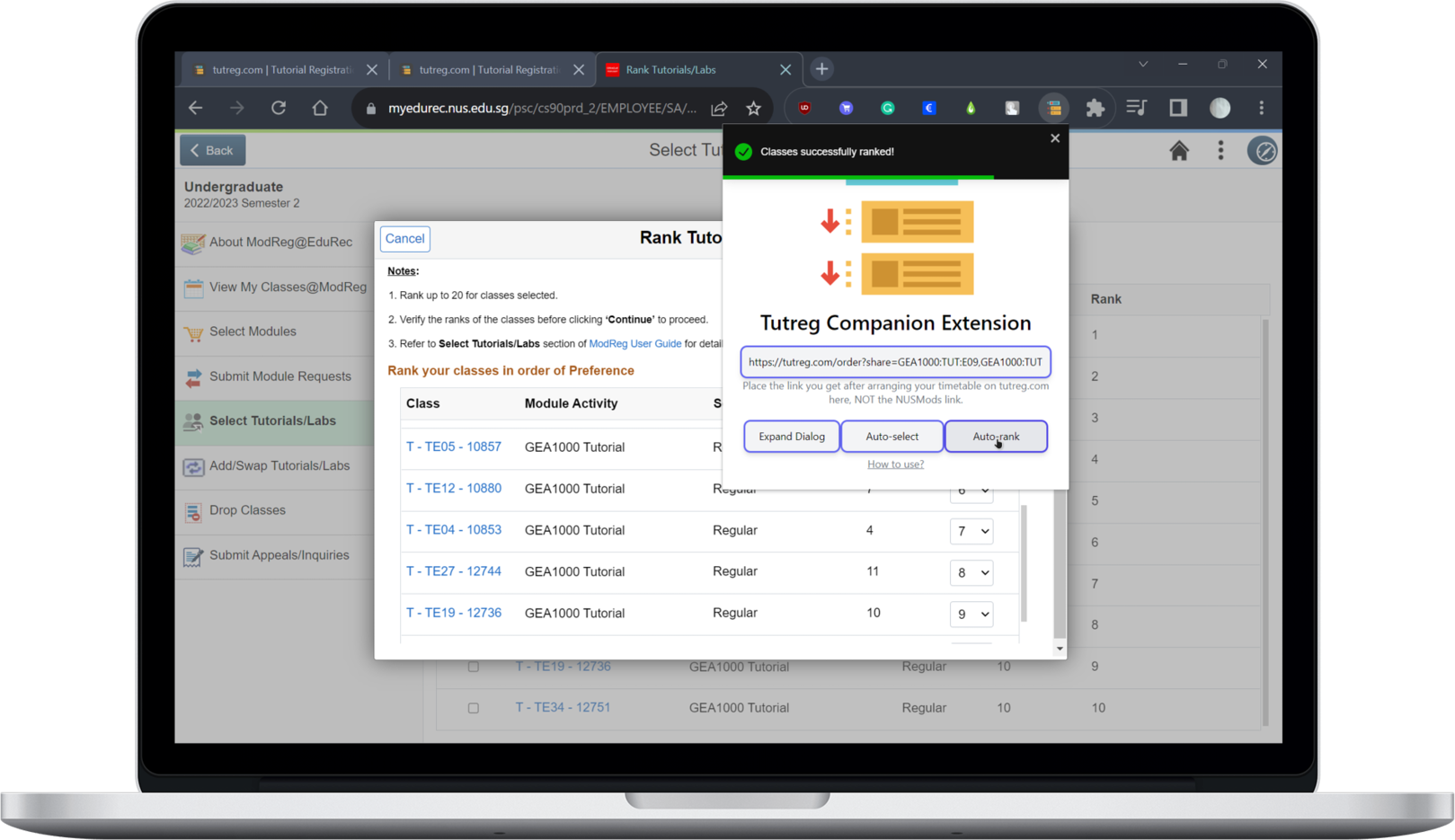 You should see a success message. Close the popup check that your classes are in the correct order If you see an error, try clicking the button again. If it persists, contact the developer at https://t.me/tutreghelp